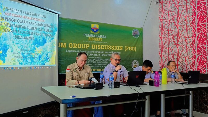 Repelita.online // Tebo – Dinas Kehutanan Jambi melalui KPHP-Tebo Barat dan KPHP Tebo Timur tengah menghadiri kegiatan Sosialisasi Perizinan dan Pengenaan Penerimaan Negara Bukan Pajak (PNBP) dalam Pengelolaan Hasil Hutan Bukan Kayu yang berasal dari Perkebunan Sawit keterlanjuran di wilayah kawasan hutan kabupaten tebo digelar oleh PT Selaras Persada Karsatama (SEPAKAT) di room lantai 2 RM.Sederhana, Rabu,08 Oktober 2025.